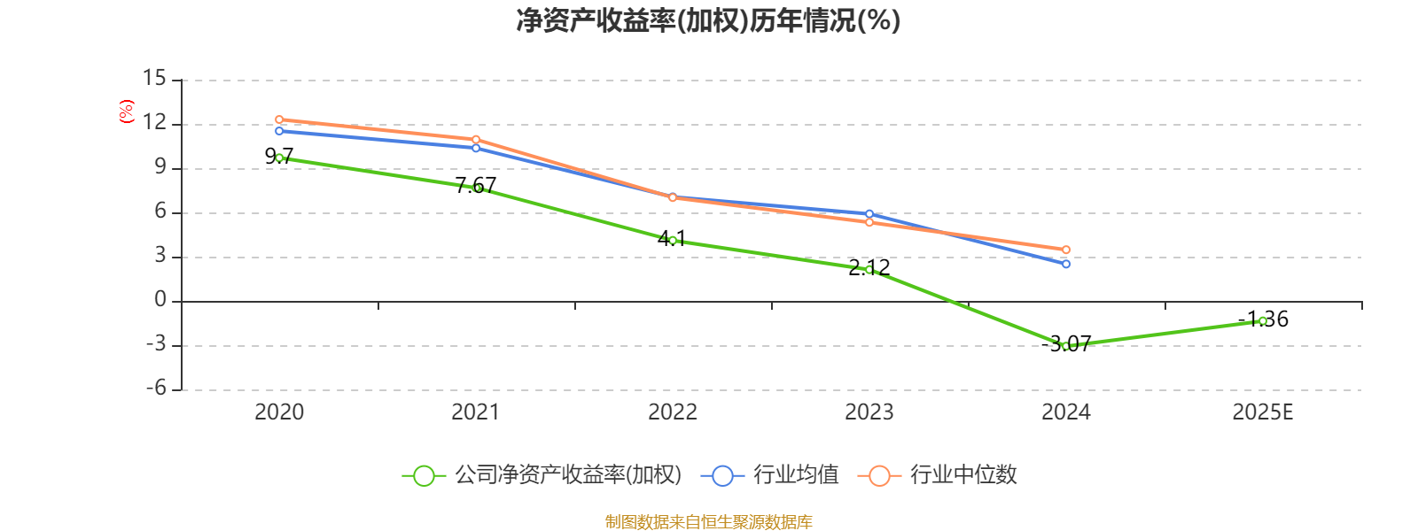数据显示,2025年公司加权平均净资产收益率为-1.36%,较上年同期上升1.71个百分点。