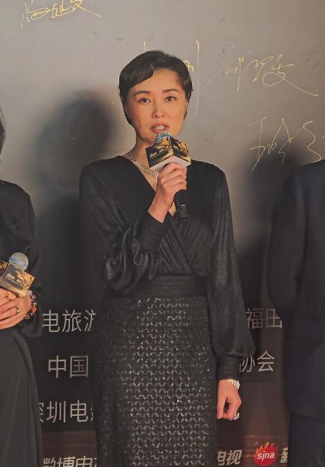 这次出席红毯迟蓬身穿黑色披风款礼服,只有肩膀的位置点缀了闪钻,增加贵气感。